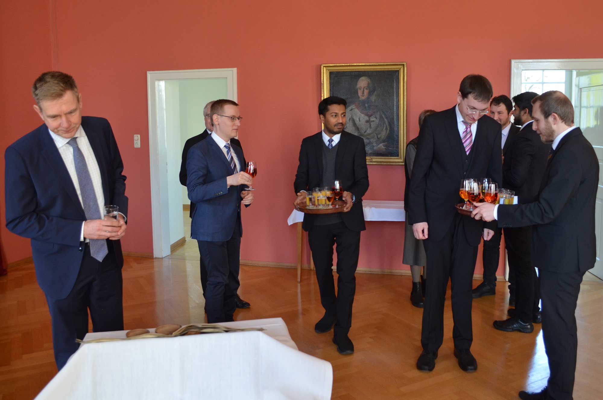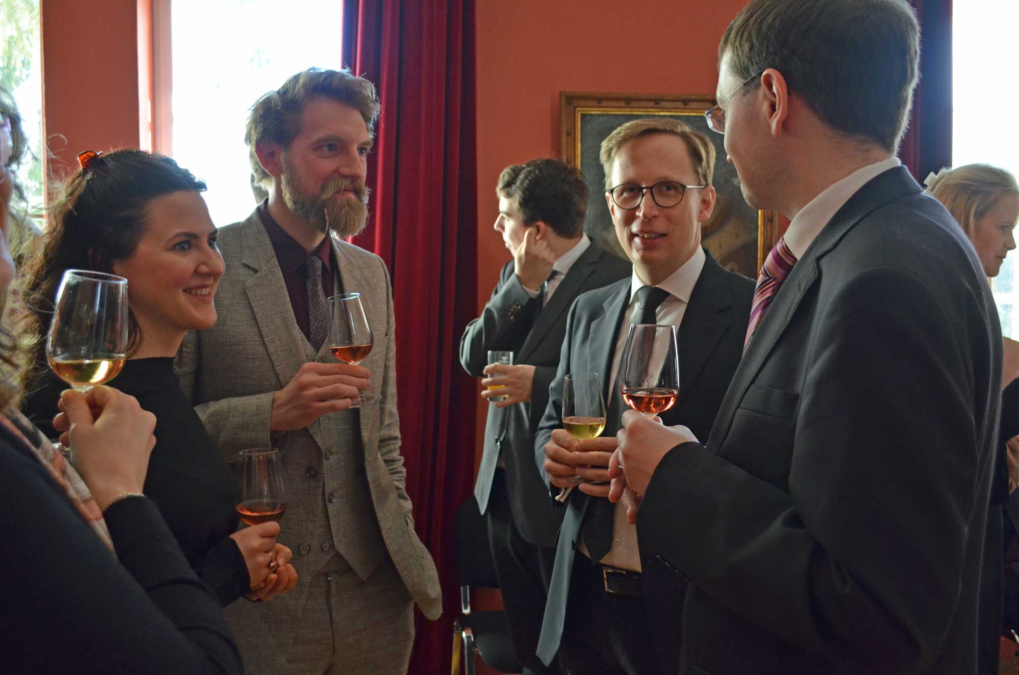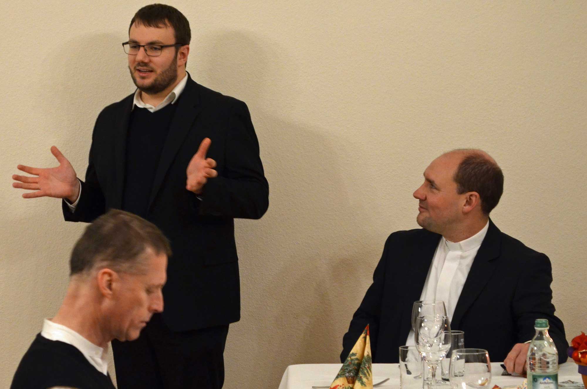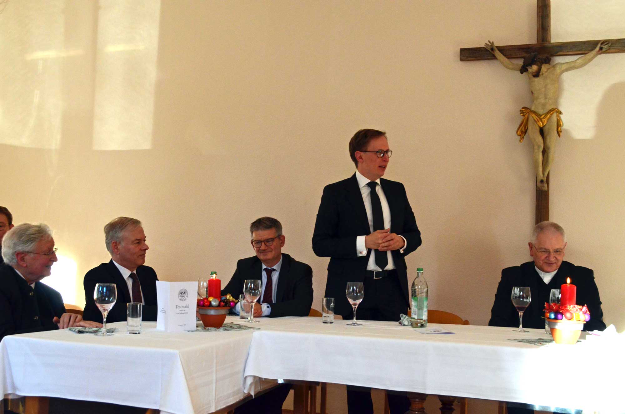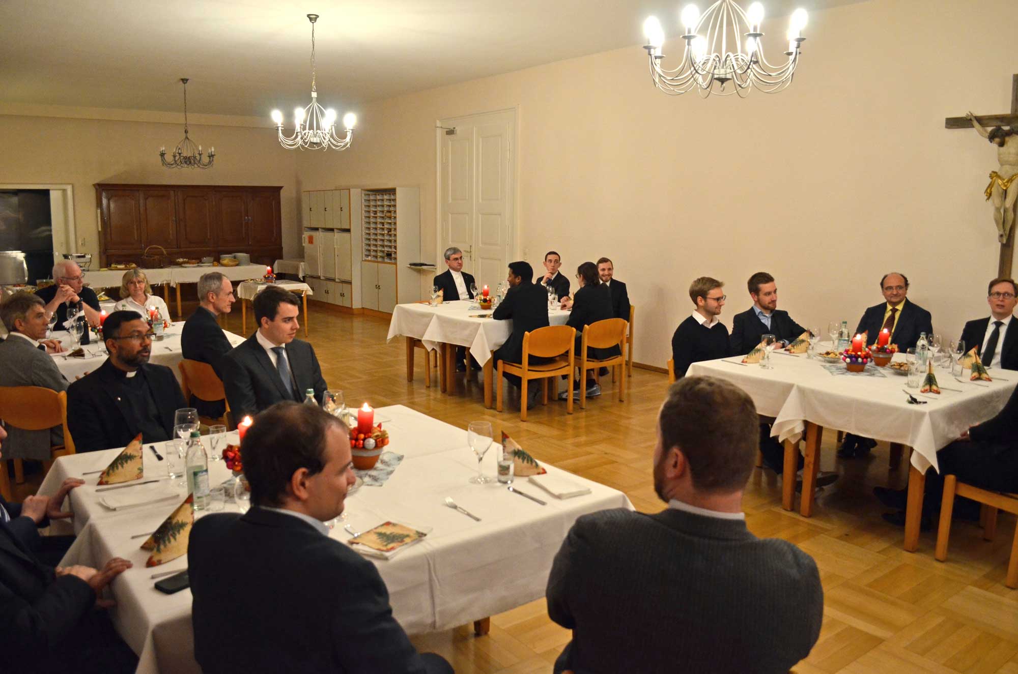 Reichlich Gelegenheit zum Austausch bot sich nach Empfang und Aperitif auch beim edlen Festmahl, das fließend in ein gemeinsames Kaffeetrinken mit adventlichem Gebäck überging. Am Nachmittag hießen Moritz Bergmann, Prof. Dr. Joachim Eck und Aaron Voderholzer die Hausgemeinschaft noch zu einer Konzertstunde mit Klavier- und Vokalmusik aus Barock, Wiener Klassik und Romantik willkommen.