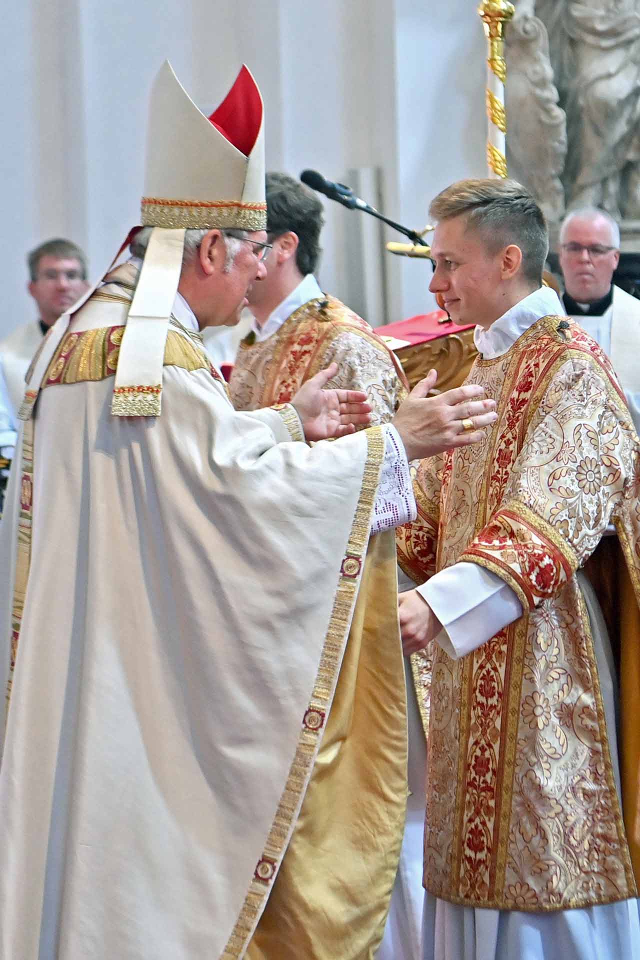 Den Anfang machte Florian Pletscher aus dem pfälzischen Beindersheim im Bistum Speyer, der am Pfingstsamstag, 18. Mai, von Bischof Erik Varden OCSO in der Domkirche St. Olav seiner norwegischen Wahlheimat Trondheim zum Priester geweiht wurde. Als Primizspruch wählte der 32-Jährige aus der Messliturgie den Aufruf „Erhebet die Herzen“.