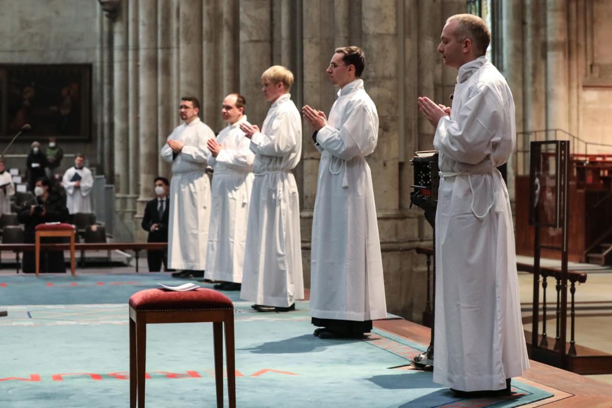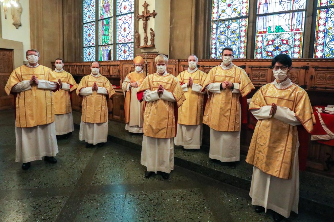 Am 2. Mai wurde unser Mitbruder Dominik Grässlin zusammen mit Thomas Backsmann, Markus Brandt, Rafal Jerzy Liebersbach, Jae Hwan Park, Jan Schönthaler und Johannes Schulte-Eickhoff von Weihbischof Rolf Steinhäuser im Kölner Dom zum Diakon geweiht. In seiner Predigt betonte Weihbischof Steinhäuser die Bedeutsamkeit ihres Auftrags gerade in diesen für die Kirche so schwierigen Zeiten: Im Beistand für die Armen und Kranken, Heimatlosen und Notleidenden könnten sie Abbild einer dienenden Kirche sein und eine andere, neue Erfahrung von Kirche vermitteln. Hierfür wünschen wir den Neudiakonen viel Freude und Gottes Segen!