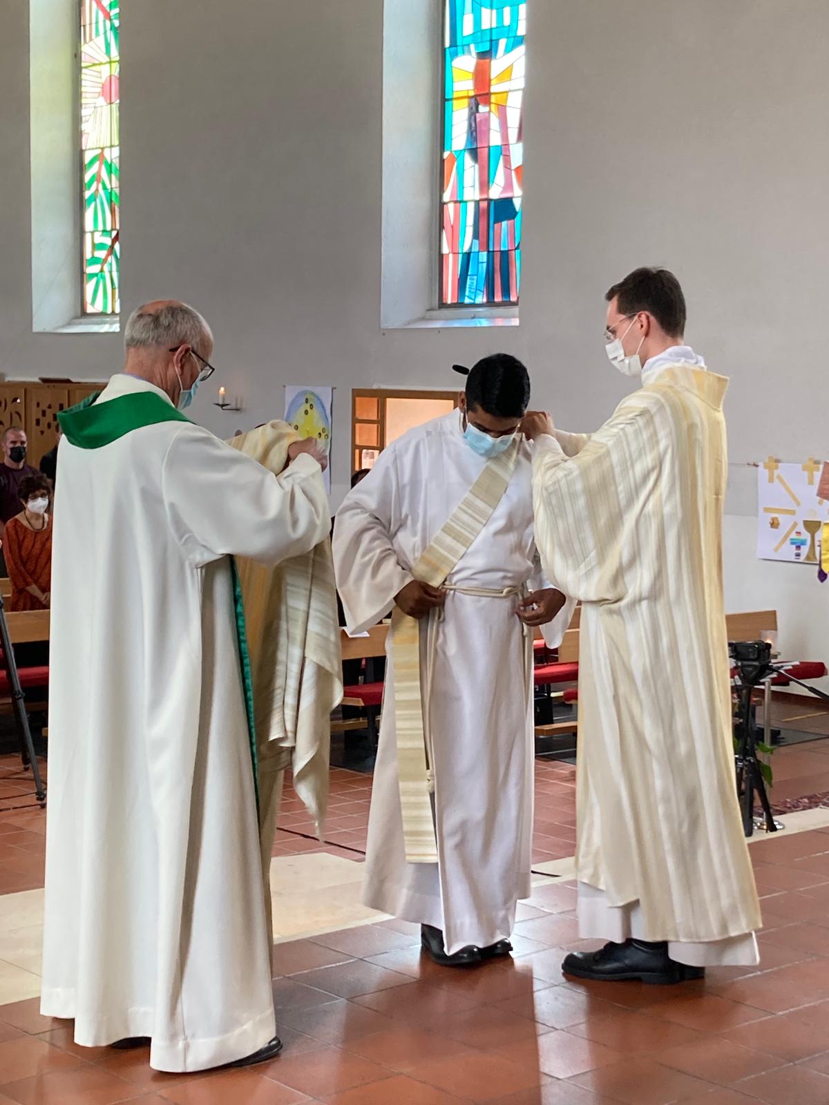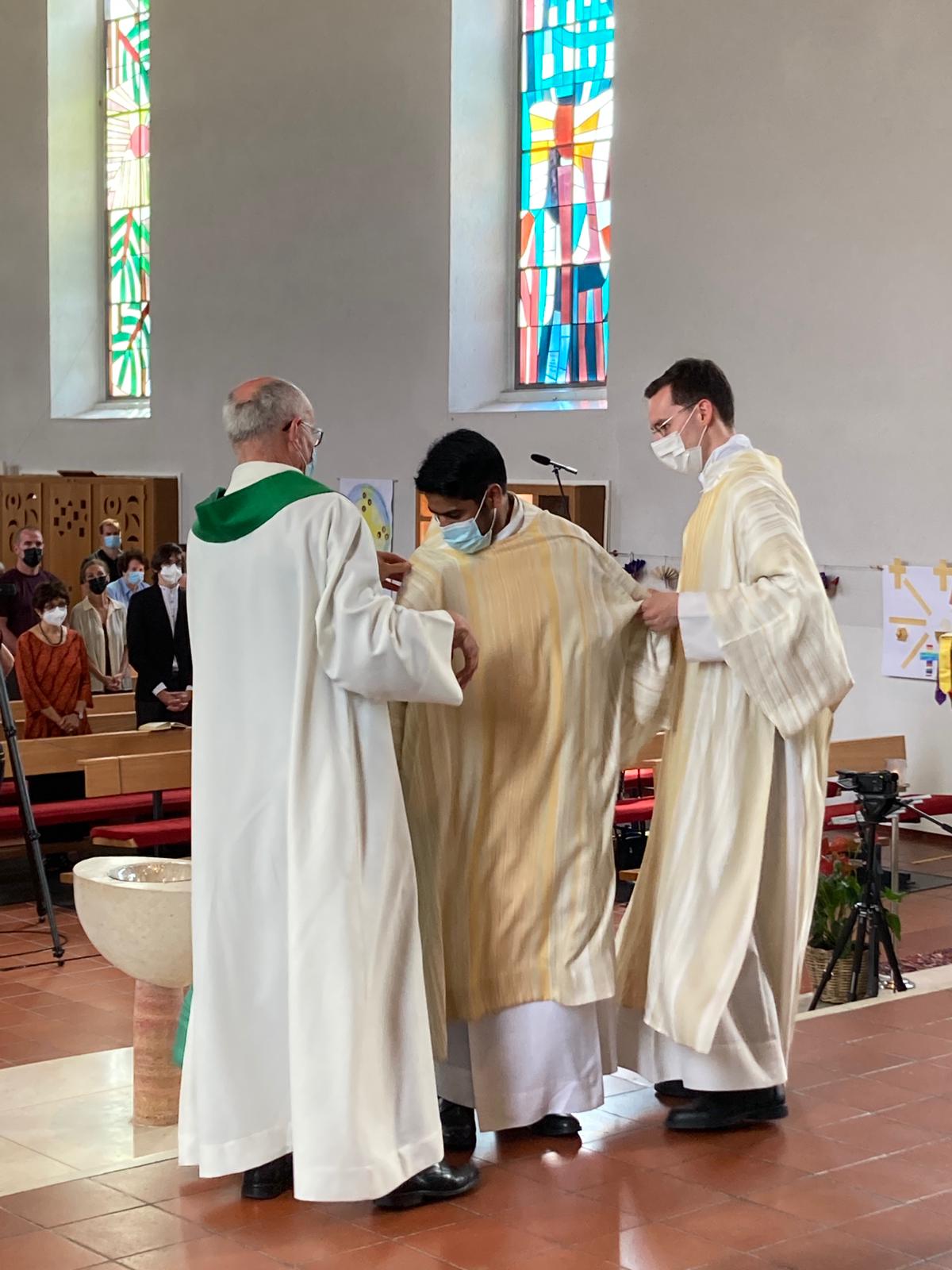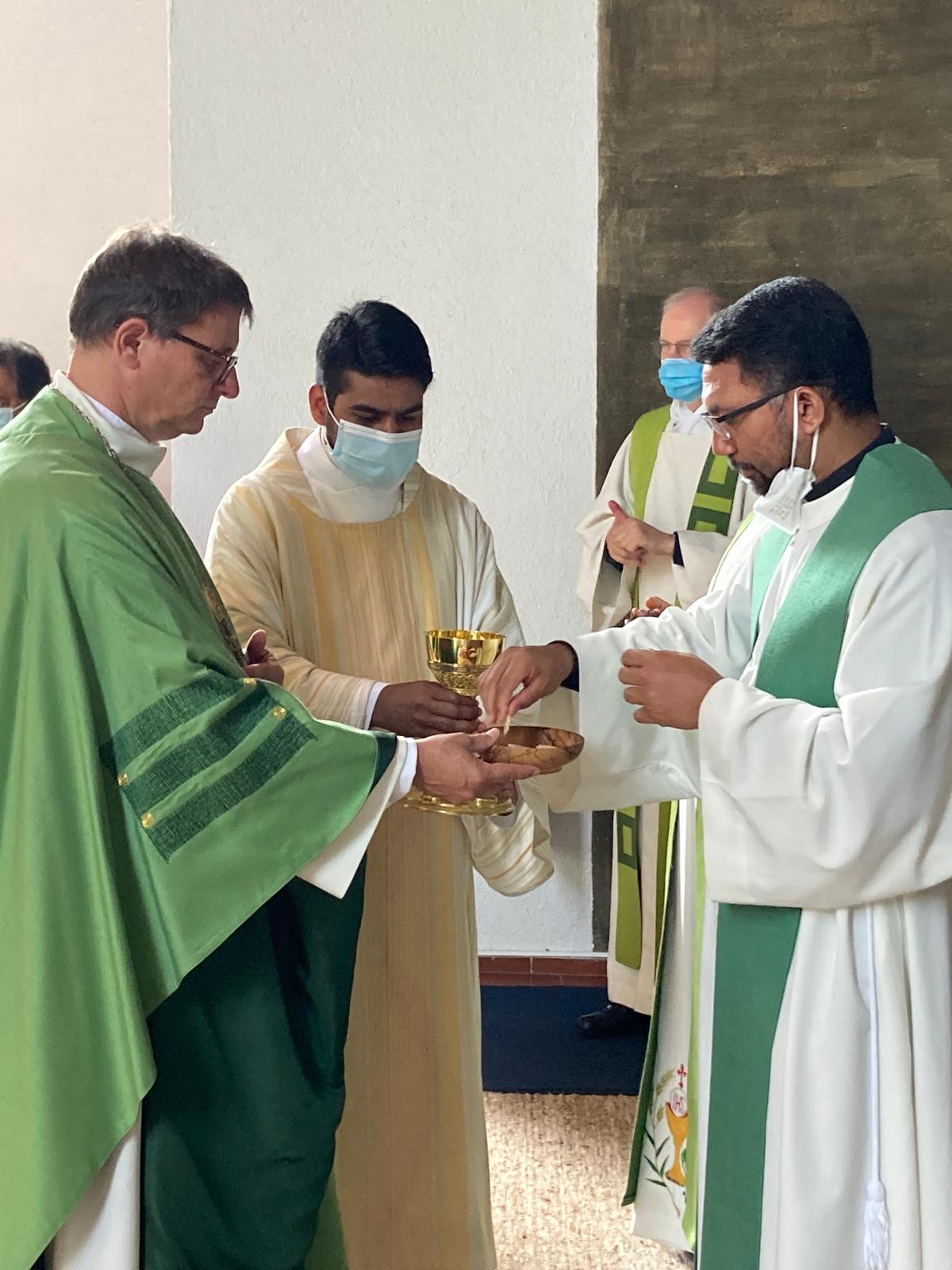 Heute empfing unser Mitbruder Joice Kalathiparambil in St. Nikolaus in Erlinsbach vom Baseler Bischof Felix Gmür durch Handauflegung und Gebet die Weihe zum Diakon. Ausgehend vom Tagesevangelium (Mk 4, 35–41) betonte Bischof Felix in seiner Predigt die Bedeutung des Glaubens, um in den Stürmen unserer Zeit – man denke nur an den Klimawandel und die Corona-Pandemie – unserer Angst zu begegnen. Im Blick auf Jesu Tod und Auferstehung könne sich dieser Glaube in uns zu einer Liebe entwickeln, die uns drängt hinauszugehen. Genau dies sei Aufgabe des Diakons: den Glauben und die Erkenntnis von Jesus Christus als Retter und Erlöser zu den Menschen bringen. Für diesen Auftrag wünschen wir Joice viel Geduld, Vertrauen und Gottes Segen!
