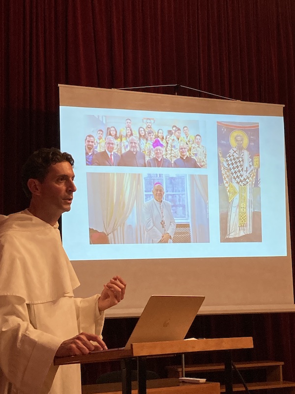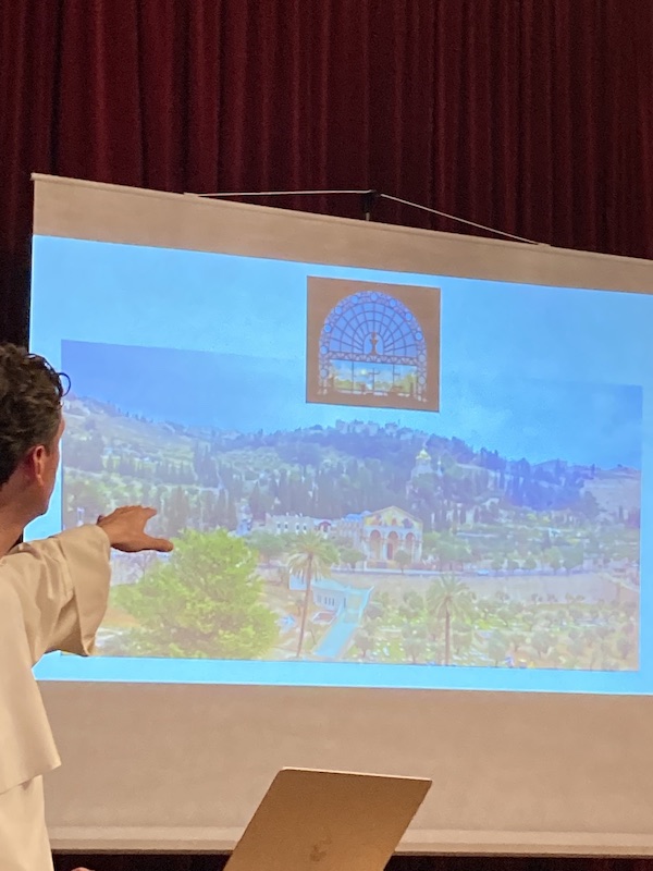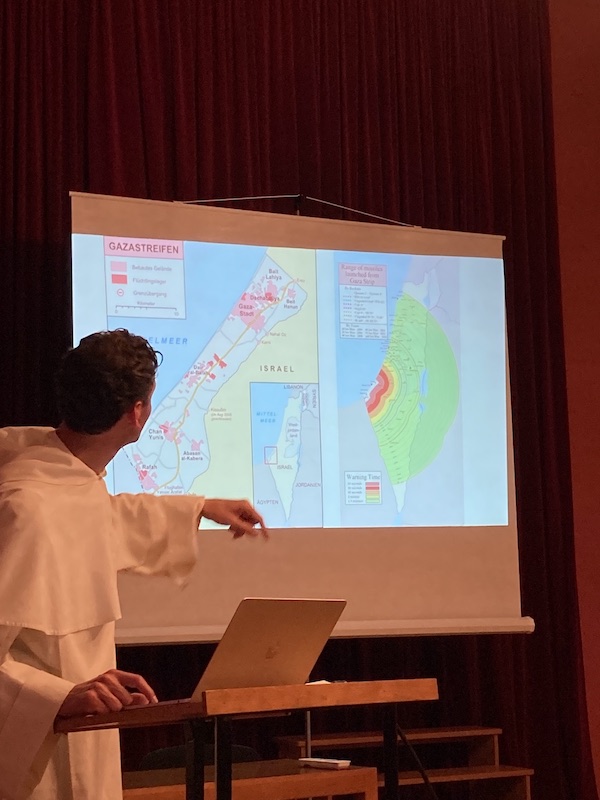 In diesem Semester führte uns der Länderabend auf eine Pilgerreise ins Heilige Land. In seinem anschaulichen Vortrag warf P. Anthony Schlaglichter auf das Zusammenleben und -wirken der zahlreichen Volksgruppen, Religionen und christlichen Gruppierungen. So entstand vor unseren Augen ein lebendiges Bild von Jerusalem, wo man mit allen Sinnen die Menschwerdung Christi spüre – und gerade angesichts der jüngsten Gewalteskalation auch seines Leidens.