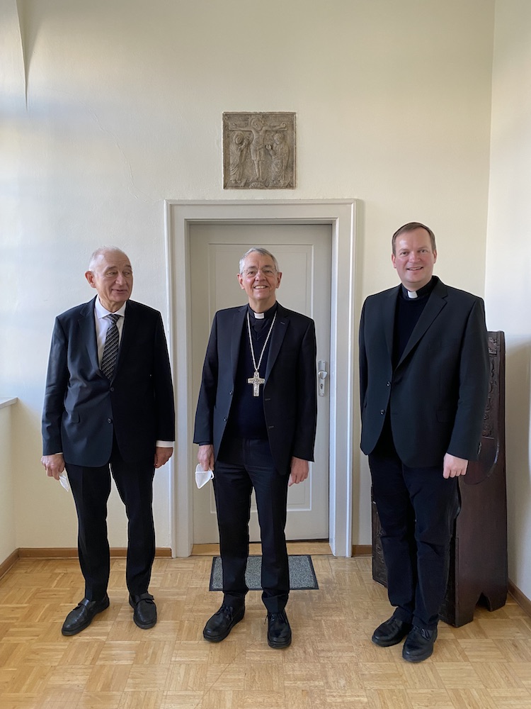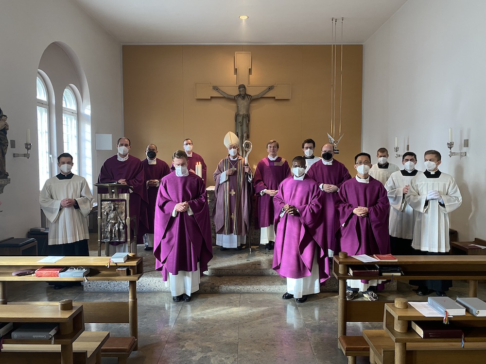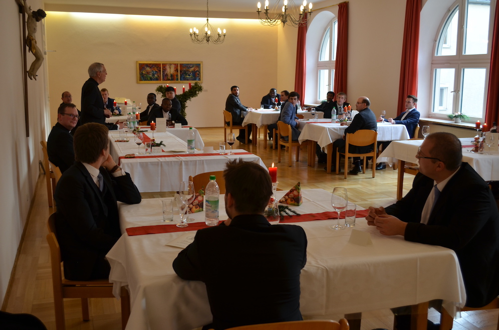 Das 527. Stiftungsfest des Herzoglichen Georgianums rückte dann wieder die Kraft der Tradition ins Bewusstsein. In seiner Predigt entfaltete Erzbischof Dr. Ludwig Schick den engen Zusammenhang zwischen dem Bußcharakter der Adventszeit und der am Gaudete-Sonntag bereits anklingenden aufrichtigen Freude über die Ankunft des Herrn. Coronabedingt weilte darüber hinaus nur der Vorsitzende der Regentenkonferenz Dr. Dirk Gärtner als Gast unter uns. Angesichts dieser Abgeschiedenheit deutete Subregens Christian Staude das diesjährige Fest daher als Anlass, um uns mit Blick auf die lange krisengeschüttelte Tradition der Kirche unserer selbst zu vergewissern – oder vielmehr Christus als Fundament unserer Hoffnung und Brücke zum Nächsten.