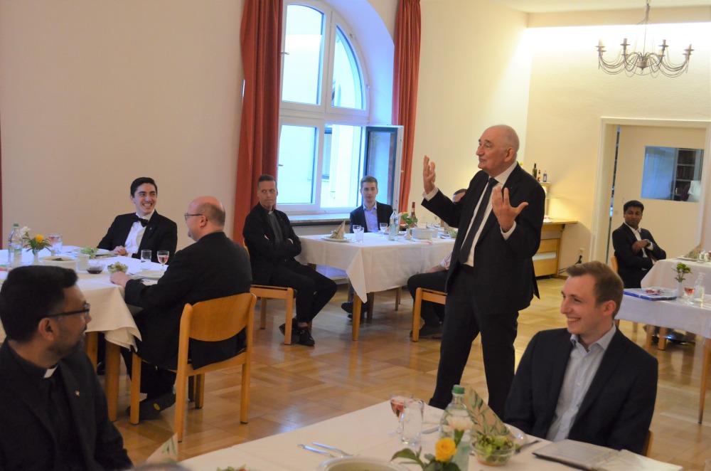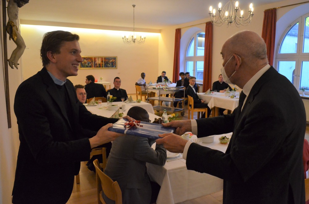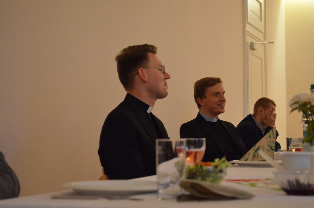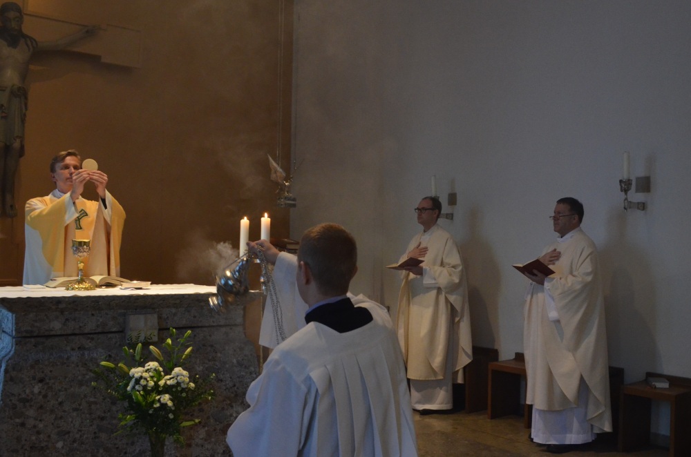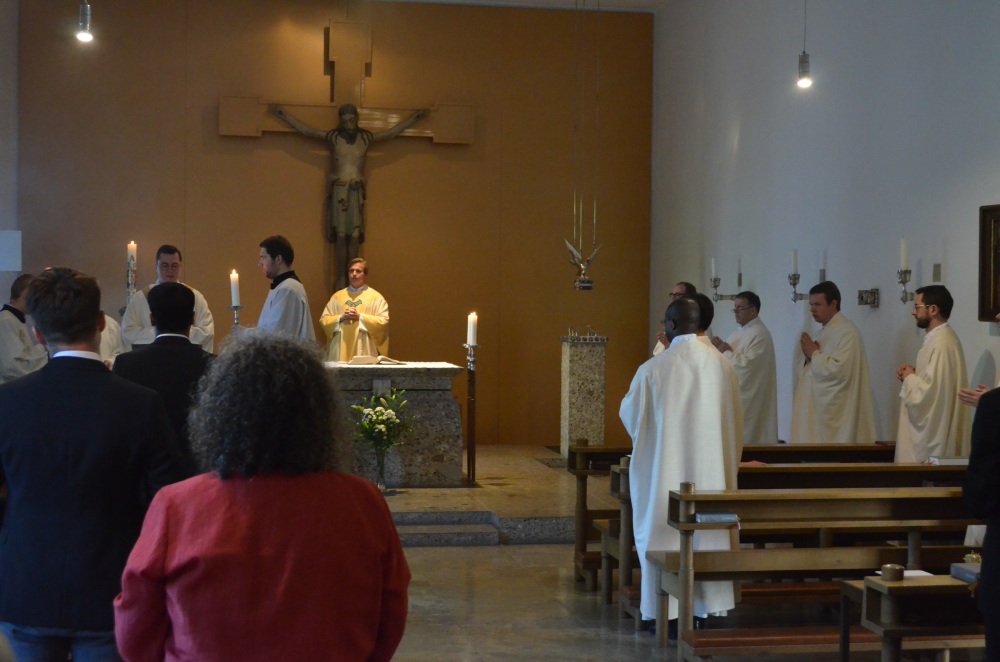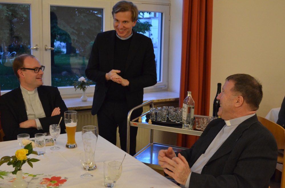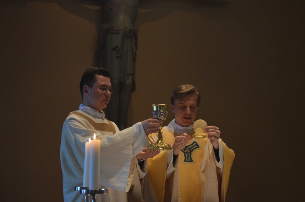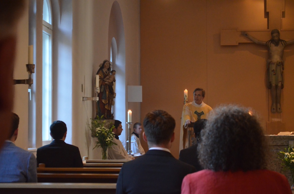 „Gott ist Tanz“ – Anhand dieses mystischen Gottesbildes der Wüstenväter und Rubljows Dreifaltigkeitsikone veranschaulichte Toni in seiner Predigt den von ihm gewählten Primizspruch: „Ich bin gekommen, damit sie das Leben haben, und es im Überfluss haben“ (Joh 10,10). Ursprünglich war in der Ikone wahrscheinlich ein Spiegel angebracht, sodass man sich bei der Betrachtung selbst in dieses freudige Beziehungsgeschehen mithineinversetzt sah – gerne folgten auch wir dieser Einladung und feierten nach der Messe beim traditionellen Schnitzelessen weiter.